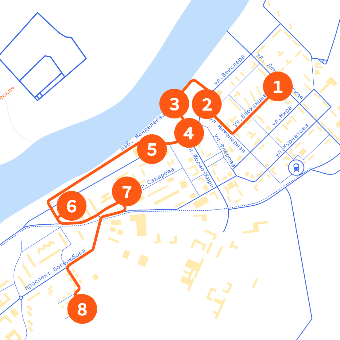 Мы предлагаем вам изучить 3 маршрута: Институтская часть и Черная речка (ИЧ/ЧР), Большая Волга (БВ) и Левый берег (ЛБ).