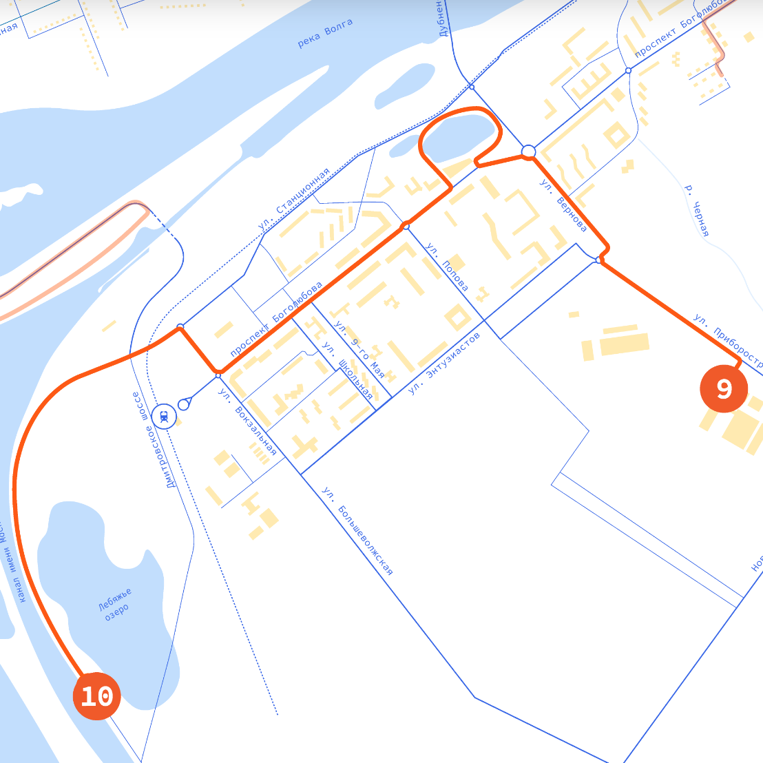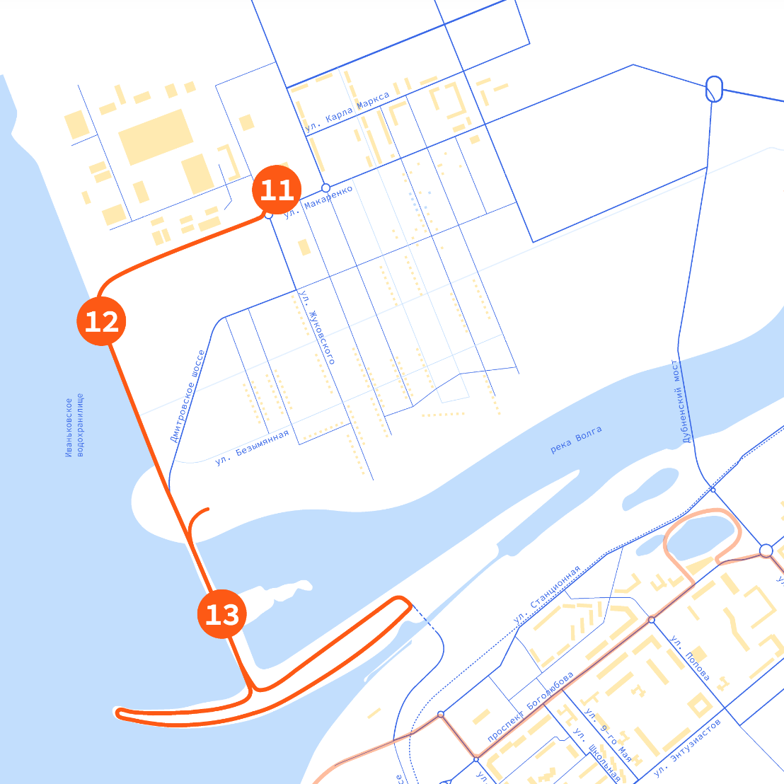 3 маршрута: Институтская часть и Черная речка (ИЧ/ЧР), Большая Волга (БВ) и Левый берег (ЛБ).